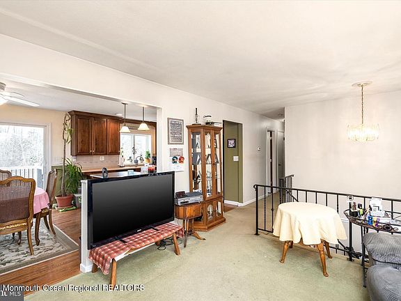 Welcome to your future home in Plumsted Township! This charming Raised Ranch is nestled on a quiet street, offering a serene and peaceful living experience. The property boasts a spacious lot that backs onto the Perfect Insanity Sanctuary, providing a picturesque backdrop for your daily life. As you step up to the main level, you'll be greeted by a country-style kitchen featuring solid wood cabinetry, corian countertops with a convenient seating area, a Jenn-Air cooktop, wall oven, and a built-in microwave. The dining room, with a slider leading to a composite deck, is perfect for enjoying meals with loved ones. The spacious living room features a large picture window, filling the space with natural light. This level also includes three bedrooms and a full bath. Venture down the hall to discover an in-law apartment with a private entrance. This self-contained space includes a living room, bedroom, kitchen, and a bath, providing comfort and privacy for guests. The lower level of the home presents endless opportunities for entertainment and relaxation. A family room welcomes you with a wood-burning stove and a paneled wall adorned with barn wood from the American House. The custom-built wet bar adds a touch of sophistication, making it an ideal space for gatherings. Additionally, there's a convenient half bath, an extra room that could serve as a game room, home office, or bedroom, and a full-sized laundry room with ample storage space. Access to the oversized 2-car garage is provided, complete with an additional door leading into the backyard for added convenience. Summer days can be spent enjoying the large above-ground pool, exploring the gardens, and relaxing on the deck off the dining room or the smaller deck off the in-law apartment. Despite the peaceful setting, the home is conveniently located close to downtown New Egypt and major routes, including 537, 539, and 195. Explore the endless possibilities that this gem offers and make it your own! Don't miss the chance to call this beautiful property home. Come and envision the lifestyle that awaits you.