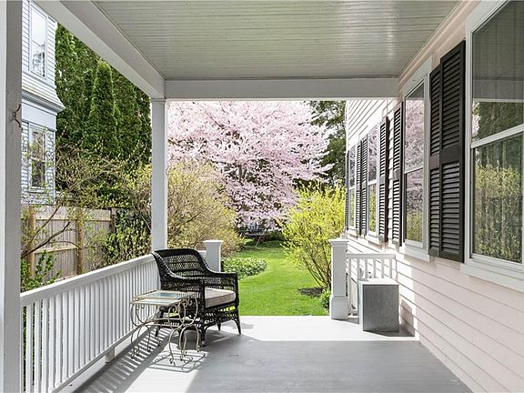 Welcome to this beautiful historic home nestled on a quiet street in desirable downtown Bristol. This property boasts over 2,500 sq ft of living space, including five bedrooms and two and 1/2 bathrooms. A stunning wrap-around porch invites you in and sets the tone for the home's timeless elegance. As you enter, you'll find a lovely sitting room with built-in bookshelves that flows seamlessly into the living room. Adjacent to the light-filled living room, the dining room showcases built-in cabinetry, adding to the home's character. The spacious eat-in kitchen overlooks the yard, which is adorned with lush perennial gardens. For modern convenience, the first floor includes a laundry room and mudroom. Upstairs, discover three bedrooms and an updated full bathroom. The third-floor architect designed addition complements the home's classic appeal, offering two additional bedrooms (or home office space) and a newer full bathroom. A pretty backyard with patio and large gardening shed completes this home. Experience quintessential downtown Bristol living at its finest, just 2 blocks from the waterfront and all the shops, restaurants, the bike path and attractions that historic Bristol has to offer!