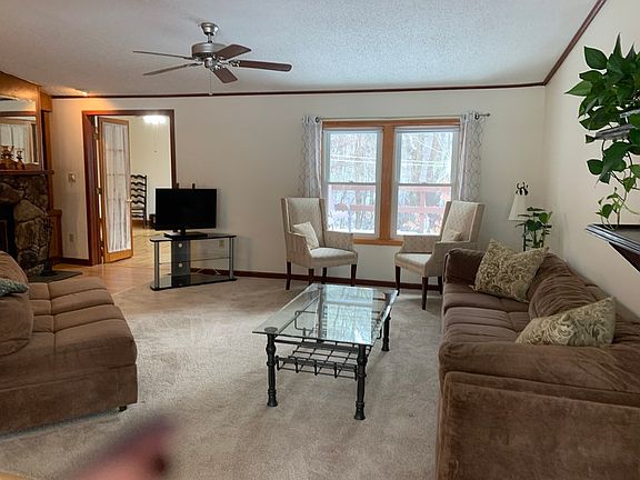 Nicely maintained 3 bedroom, 2.5 bath Double Wide is sought after 55+ Adult Community! This very spacious home offers 1,700 sq feet of one level easy living. Open -concept kitchen, dinning and living room with grand fireplace. Flexible floor plan allows for 4th bedroom or home office. Nice back deck to wooded back yard. Plenty of closet space and 3 outside sheds for plenty of storage. Property was upgraded in 2006 with new kitchen, baths, windows and siding. New roof 2014 with skylights. Don't miss out on this rare opportunity!