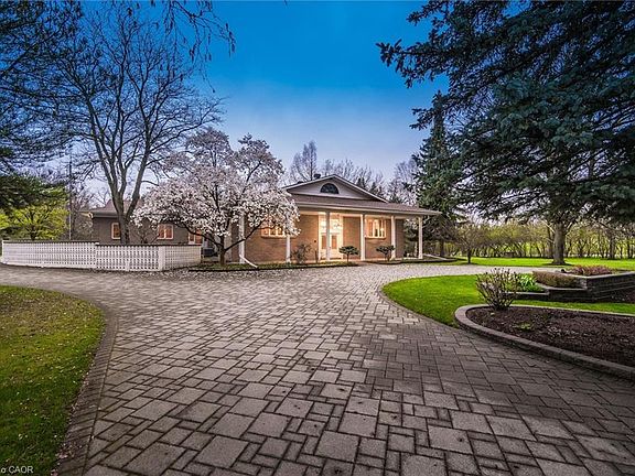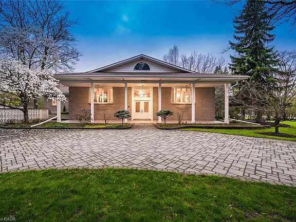 A once in a lifetime opportunity to own one of Waterloo's most sought after addresses. The distinguished estates on this sought after enclave rarely come available, making it one of Waterloo's best kept secrets! This masterpiece custom home set on a stunning 2 acres lot is steps from the Grand River, Walter Bean Trail, Grey Silo Golf Course and provides seamless access to the city's most sought after amenities and workplaces while ensuring a cottage like retreat away from the urban hustle. This exceptional one-owner home has been meticulously maintained, showcasing true timeless elegance & the highest degree of attention to detail. With a U shaped interlocking stone drive, mature trees, perennial gardens, private courtyard, covered front porch & two separate driveways leading to the 4 car garage/workshops (2 on either side of the home). Featuring 4 bedrooms and 3.5 baths & over 5,800 sqft of finished living space with a fully renovated chefs kitchen (2019) featuring solid oak cabinetry, quartz countertops, a breakfast bar, wine fridge & sleek refined design. The real showstopper is the sunroom in the heart of the home, with soaring ceiling height & a glass roof allowing sunlight to permeate the space with breath taking character. You will also love the cozy family room with wood burning stove off the kitchen which opens up to the back sunroom overlooking the spectacular back acreage. Two furnaces & a/c's service the home (2019). The basement walks out to the extensive outdoor living space which serves as the perfect retreat in nature. The interlocking patio can be covered or partly covered by a power awning for the perfect mix of sun & shade in the west facing rear yard surrounded by cascading rock gardens, grape vine archway, stunning magnolia trees, a gazebo & shed. The two acre lot offers endless opportunities to enjoy this rare gem of a property!