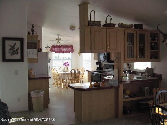 Very Nice home and property. Property is totally fenced. Nice size kitchen with appliances, breakfast area and dining area. Vaulted ceiling in living room. Master bedroom on one end and the extra 3 bedrooms on the other. Great detached garage. Wonderful view of the mountains.Close to the Green River Home now has a new gas stove