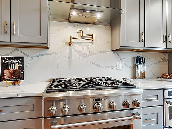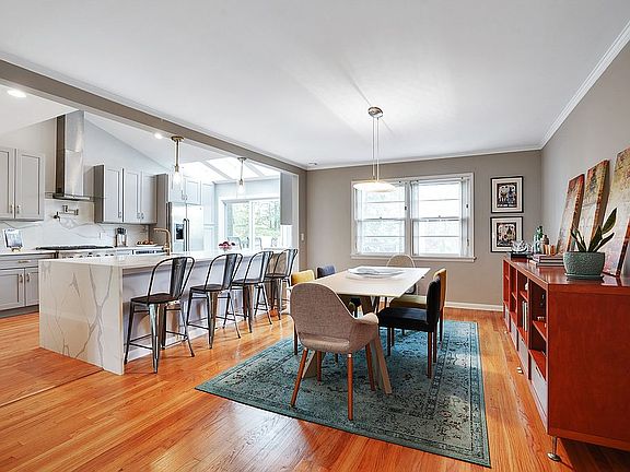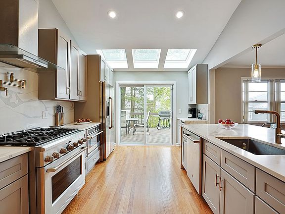 Beautifully updated and spacious mid-century modern with stunning gourmet kitchen and flowing open floorplan. Ample space to relax and work from home! Stunning kitchen with 6-burner range, microwave drawer, quartz backsplash and counters, waterfall edge island wih pendant lighting and sliders to Deck. Master suite with custom closet and private bath. Private setting with Deck, professionally landscaped yard with integrated sprinkers and fencing. Desirable location on a quiet street just around the corner from parks, schools, town & NYC trains.