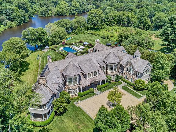 3-D Virtual Tour: www.35CloseRd.com Magnificence in every detail! Experience unparalleled luxury in an exceptional waterfront setting in Greenwich. This grand estate nestled on 5.29 lush acres enjoys 300 sf of private water frontage and inspiring vistas of 17-acre Wilshire Lake. Here awaits a blissful oasis that epitomizes resort-like living in a prestigious locale, with a large heated swimming pool, Zen patios & balconies, a private dock, gazebo, lake pavilion, game courts, and studio, right on your own lake-front grounds. Whether as your country escape or primary home, this incredible 12,516 sf, 8 bedroom, 11.2 bath retreat is thoughtfully designed for your living comfort and seamless indoor-outdoor entertaining. Impeccably-detailed, generously-proportioned main rooms connect to lovely outdoor spaces through glass doors. A double-height reception foyer welcomes your entry and reveals elegant elements that continue throughout the home like rich hardwood floors, exquisite millwork, moldings and stones, soaring architectural ceilings, open arched doorways, 7 fireplaces, sun-filled windows/French doors, and refined finishes at every turn. Host gatherings in style in the formal living and dining rooms and stately wood-clad library/billiards room with a full wet bar as your backdrop. His and her offices provide quiet, intimate settings. The chef will be inspired in the gourmet kitchen with all the best appointments, a huge center island, butler's pantry, built-in workstation, and windowed breakfast nook for savoring morning coffee. Adjacent sits an open family room with wood cross-beamed ceilings, a built-in entertainment center and glass doors to the rear patio. The upper level presents peaceful sleeping quarters, with a master retreat that's beyond compare. The expansive master bedroom, with airy ceilings and glass doors to a private balcony overlooking the lake, is complemented by a sitting room, walk-in closets, sky-lit woman's library and opulent spa-like bath with a fireplace. Additional bedrooms include a nanny/in-law suite. The massive lower level opens to gorgeous gardens and has something for every mood with a fireside rec room, squash/basketball court, home theater, and capacious wine cellar for your favorite vintages. A bespoke pool gazebo and lake pavilion imported from England with hand-laid roofs, and a whole-house generator add to the allure of this one-of-a-kind paradise.