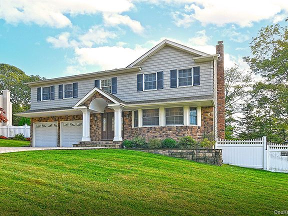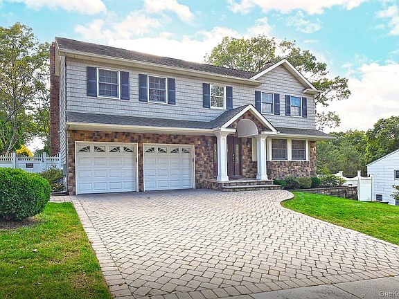 Welcome to 35 Columbus Avenue, Kings Park. A beautiful 4-bedroom, 2.5-bath Brookfield Colonial featuring a versatile bonus room—perfect for a 5th bedroom or home office. The home offers a spacious entry foyer, formal living room, and formal dining room. The cherry wood eat-in kitchen boasts granite countertops, stainless steel appliances, gas cooking and plenty of cabinetry. Enjoy the cozy family room with built-ins and a gas fireplace. The primary suite includes a custom walk-in closet and an updated bathroom with separate marble vanities and a large porcelain shower. Additional highlights include nicely sized bedrooms, a newly finished basement with laundry area (including a new washing machine), full bathroom, and ample storage. Step outside to your private backyard oasis with an in-ground saltwater pool, updated heater and filter, large brick-paved patio, professional landscaping, retaining wall and full fencing. A two-car garage, paved driveway and lovely curb appeal complete this stunning home.