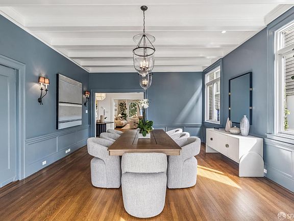 Welcome to 35 Commonwealth, where timeless San Francisco architecture meets contemporary luxury. Set on one of Jordan Park's rare wide parcels, this fully detached estate offers nearly 4,800 sq.ft. across four levels on a 3,998 sq.ft. lot. Flooded with natural light, the main level is designed for grand entertaining and everyday ease, featuring a formal living room with fireplace, gracious dining room, and spacious chef's kitchen with stainless appliances. A bright sunroom/family area flows to a deck ideal for al fresco dining with steps to a lower deck and landscaped backyard. Upstairs, the private level offers three bedrooms and three baths, including a serene primary suite with private balcony, multiple walk-in closets, and spa-inspired bath. A secondary suite with walk-in closet, third bedroom, and laundry complete this floor. The top level adds versatility with a family/media room, fourth bedroom, full bath, and office. Outdoors, a rare city luxury awaits: a private basketball/sport court doubling as a generous patio, plus a two-car garage and abundant storage. Enjoy a location defined by neighborhood charm and convenience, moments from Sacramento Street, Laurel Village, the Presidio, excellent schools, and commuter access.