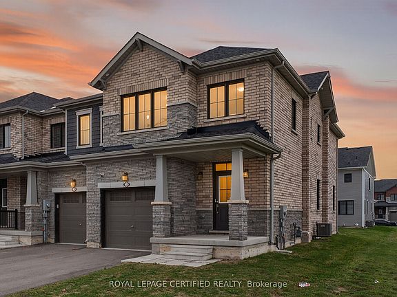 Beautiful premium corner-lot freehold townhouse located in the highly desirable Rolling Meadows community of Thorold. This full-brick exterior 3-bed, 2.5-bath home offers 1,715 sq. ft. of high-end finished living space with the potential to create a legal basement apartment. Enjoy high ceilings, upgraded hardwood flooring, and an open-concept main floor ideal for entertaining. The second floor features a conveniently located laundry room, a spacious primary bedroom with a walk-in closet and 4-piece ensuite, along with two additional generously sized bedrooms and a second full bath. The gorgeous kitchen provides abundant counter space and cabinetry, flowing seamlessly into the dining and living areas perfect for family gatherings or cozy nights in. Modern finishes, ample storage, and large windows throughout create a bright and welcoming atmosphere. Perfectly situated with easy access to Highway 406 and just minutes from Brock University, Niagara College, the Pen Centre, parks, schools, grocery stores, and restaurants. An exceptional opportunity in one of Thorold's most sought-after communities. Some photos are virtually staged.