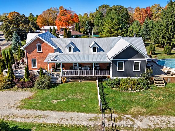 Set on 3.2 fully fenced acres in the heart of Toledo, this completely rebuilt brick century home offers an extraordinary lifestyle. Originally reimagined & rebuilt on the inside in 2010 and thoughtfully expanded with a stunning addition in 2021, this 2-bedroom, 2-bath residence is where classic design meets contemporary comfort. Step inside to soaring 16-ft vaulted ceilings with exposed beams, creating a grand and inviting atmosphere. The showpiece kitchen is a dream for entertainers, featuring a massive island with its own prep sink, abundant counter space, and a walk-in pantry that makes organization effortless. The open-concept main level also boasts a walk-in closet, two cozy fireplaces, and seamless flow to the wrap-around porch perfect for morning coffee or sunset views. Upstairs, the luxurious primary suite offers a private ensuite with a charming clawfoot tub, another walk-in closet, and a unique loft overlooking the main floor, adding to the homes open and airy feel.Outside, the property is equally impressive. The workshop/barn with pellet stove is ideal for hobbies or storage, while the above ground pool (2022) and fenced yard make entertaining easy. Countless updates giving buyers peace of mind for years to come. The electrical and plumbing were completely redone in 2010, along with a new septic system the same year, and a new well was added in 2014. In 2019, a hot water on demand system was installed, paired with a backup electric hot water heater (owned). A new forced-air furnace was added in 2020, the home was freshly painted in 2021, and in 2022 the yard was fully fenced to complete the upgrades. Every detail has been thoughtfully updated, offering both character and comfort. With its wrap-around porch, fireplaces, and timeless finishes, this home is more than a place to live it's a retreat.
