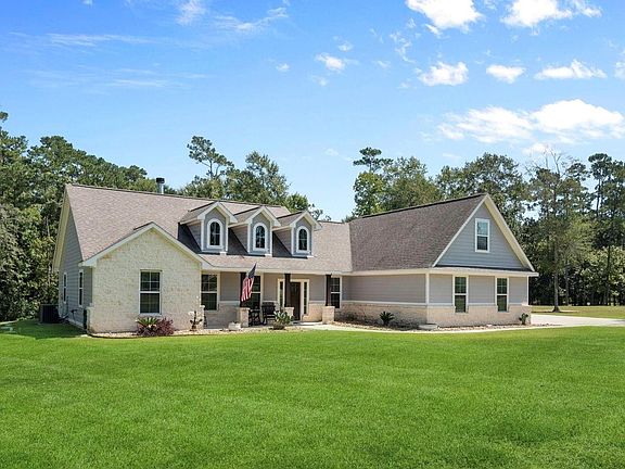 Welcome to this stunning 3-bedroom, 2.5-bath home nestled on 3 acres in the desirable White Oak Trails neighborhood. This spacious property features an open-concept design perfect for entertaining and family living. The main floor boasts a light-filled living area, modern kitchen, and a dedicated office for working from home. Upstairs, you’ll find a versatile game room ideal for kids, hobbies, or movie nights. The home’s thoughtful layout provides both comfort and functionality, while the expansive outdoor space offers endless opportunities for enjoying nature, gardening, or future additions like a pool or workshop. Relax on the front porch and take in the peaceful surroundings, with plenty of room to spread out and enjoy the quiet country setting while still being close to town amenities. Don’t miss your chance to own a beautiful home with space inside and out! White Oak Trails amenities include a playground, fishing pond, pickleball, and basketball court.