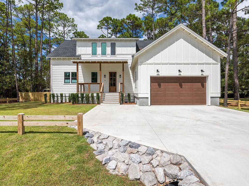 Exquisite & Meticulously Built Custom Modern Farm Style Home! This 5 Bedroom, 31/2 Bath, 3,310 sq.ft home has the heart and soul of the builder infused throughout with pristine finishes established on a lovely .334 acre lot surrounded by woods. No HOA and No Restrictions. As the builder's 10th ''One of a Kind'' Signature home here in the Santa Rosa Beach area, MK Home Design LLC expects completion is April 10th and ready for move in!! Are you looking for a home like ''no other''? This is truly a ''gem'' waiting for you to call it home!! Among the many wonderful attributes of this home, you will find that this open floorplan is a ''must see''.From the lovely front porch, the grand foyer welcomes you to a wood crafted 19' vaulted ceiling and beautiful custom welded stairwell leading up to an open balcony on 2nd floor show casing a gorgeous chandelier.The spectacular kitchen has custom made solid wood ceiling beams, beautiful cabinets, floating shelves, farm style sink, quartz waterfall countertops, and KitchenAid appliances. From the Kitchen you can access the very large mud room, pantry and the laundry room complete with GE Profile Washer/Dryer. Retreat to the 1st floor master bedroom and enjoy its' bathroom oasis with your very own luxury bathtub, separate shower, and his/her vanities.