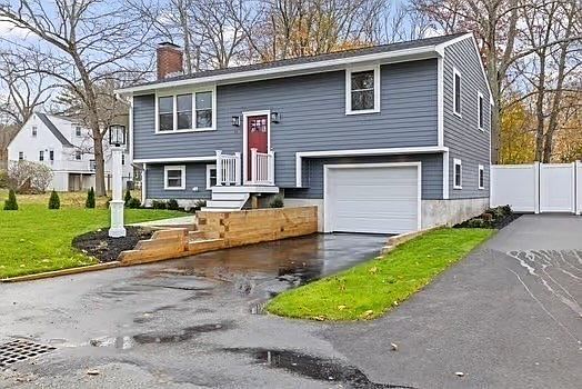 Beautifully renovated split level in desirable neighborhood within 5 minutes to the commuter rail station!! Walk in and fall in love, as this house has all new everything! From kitchen, adorned with New cabinets,Granite counters, kitchen island, slider, windows, highly efficient heat pump, central AC and full bath! A great living room with fireplace leading out to a private deck, as well as a great lower level with a third bedroom possibility, additional fireplace and cozy family room. Space for a home office and storage. 2 driveways offer the flexibility for boat storage or just additional parking for the holiday party! Nice fenced in yard with a shed.Seller reserves the right to accept an offer at any time.