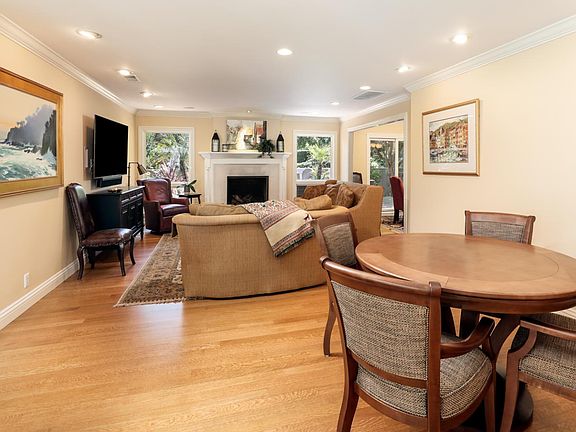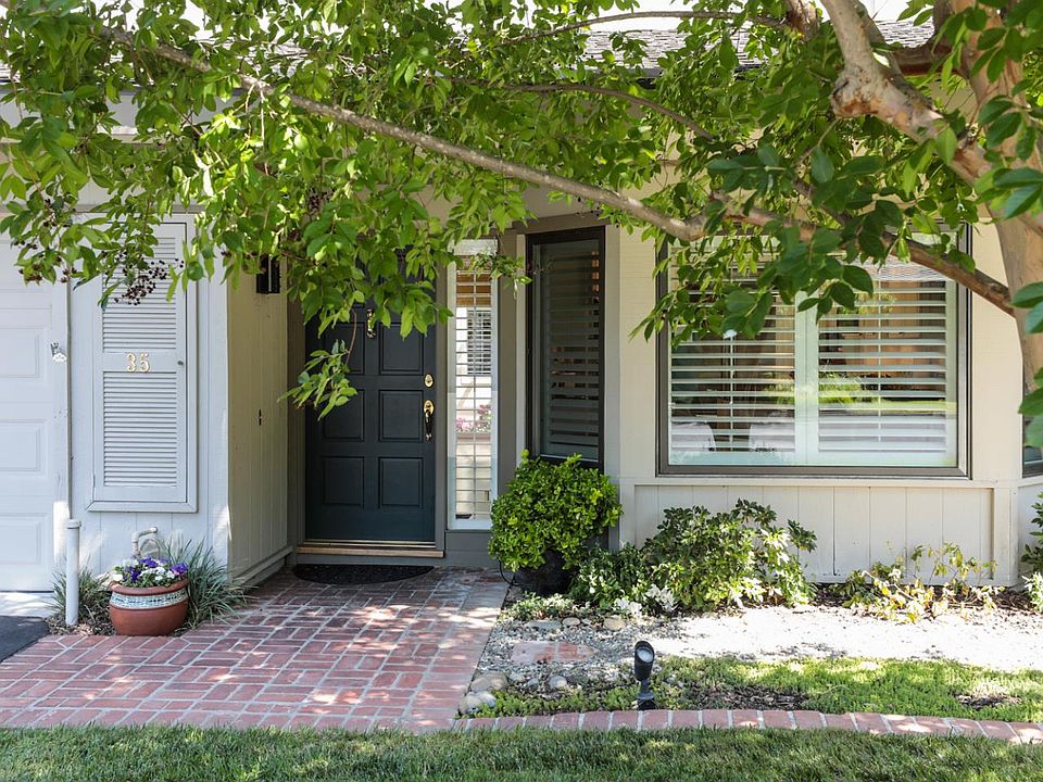Elegant North Los Altos townhome with rare second story bonus room/office. Coveted premium location on flat cul-de-sac near pool and green meadow. One of the largest homes in the community. Peaceful 2,327 +/- sf (Buyer to verify) w/ formal living & dining rooms w/ bespoke cabinetry, gas log fireplace, two flat screen tv's + comfortable family room/den! Bright remodeled granite/stainless kitchen w/gas cooktop, hot water dispenser, bay window seating area. Oversize owner's suite w/ large chic tiled bathroom with whirlpool tub, separate shower & toto washlet toilet. Lovely guest suite w/remodeled bath. Interior laundry. Premium details throughout - refinished hardwood floors, plantation shutters, a/c, raised accent ceilings, recessed lighting, crown molding. Central garden atrium room floods home w/ light. Elegant extended private garden in front yard and stunning brick patio w/views of serene green meadow and mature oaks. Abundant storage. Superb LA Schools & close to The Village of LA.