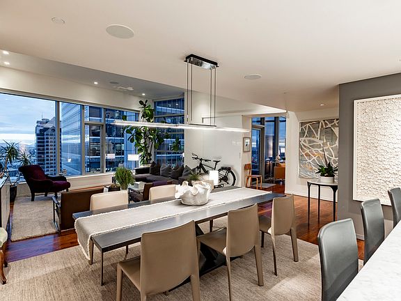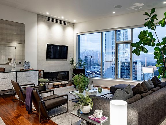 Perched high above the heart of downtown Salt Lake City, Penthouse 1905 at The Regent represents the pinnacle of contemporary urban living. This extraordinary residence was thoughtfully expanded during construction to combine the best elements of two units, resulting in a remarkable open layout and volume rarely found in the building.Soaring ceilings in the great room, den, and primary suite frame breathtaking views of the city skyline, the Wasatch Range, and the luminous western sunsets. Walls of glass invite natural light throughout the day, while an expansive balcony provides a seamless connection to the outdoors.The primary suite is a true retreat, featuring a built-in coffee bar, exceptional walk-in closet organization, and a spa-inspired bath with a freestanding soaking tub and a steam shower designed as an art piece itself, encased in curved glass with multiple shower heads and a stone bench beneath a cascade of body jets.A private den with custom metal shelving opens to the balcony, offering both inspiration and serenity. The great room combines formal dining and a generous living area anchored by a sleek contemporary fireplace. The kitchen blends clean, modern lines with luxury finishes including flat-front white cabinetry, stunning marble countertops, an appliance garage, Gaggenau appliances, and a sculptural island for dining or gathering.Additional highlights include Lutron lighting, radiant floors, Toto fixtures, exquisite wallpaper and millwork, and generous storage both in the unit and within the building. The Regent's amenities, an indoor pool, fitness center, and secured parking, complement a lifestyle of ease and sophistication. Steps from the Eccles Theater, City Creek Center, the city's top dining and the Delta Center, this penthouse offers a rare combination of luxury, privacy, and connection to the vibrant pulse of downtown Salt Lake City.