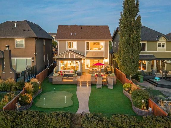 Welcome to 35 Cranarch Terrace SE, an EXECUTIVE RESIDENCE located in the highly sought-after community of CRANSTON. Perfectly positioned along CRANSTON’S RIDGE, this stunning home captures BREATHTAKING, UNOBSTRUCTED VIEWS of the BOW RIVER VALLEY, FISH CREEK PARK, and the ROCKY MOUNTAINS. With DIRECT ACCESS TO WALKING AND BIKING TRAILS, it provides the perfect balance of NATURAL SERENITY AND URBAN CONVENIENCE. Step inside to discover a BRIGHT, OPEN-CONCEPT FLOOR PLAN designed to emphasize SPACE, LIGHT, AND COMFORT. The main level features SOARING CEILINGS and EXPANSIVE WINDOWS that frame the panoramic views. The warm and inviting LIVING ROOM centers around a GAS FIREPLACE, creating a cozy yet sophisticated atmosphere. The CHEF-INSPIRED KITCHEN combines functionality with modern elegance. It includes GRANITE COUNTERTOPS, RICH CABINETRY, a LARGE CENTRAL ISLAND, STAINLESS STEEL APPLIANCES, and a SPACIOUS WALK-THROUGH PANTRY featuring a BUILT-IN DOG DOOR that connects conveniently to the MUDROOM AND GARAGE. A dedicated MAIN FLOOR OFFICE provides a quiet workspace, while the DINING AREA opens onto a LARGE, LOW-MAINTENANCE DECK—perfect for morning coffee or watching evening sunsets. Upstairs, the PRIMARY SUITE offers a true retreat with a SPA-LIKE ENSUITE featuring DUAL SINKS, a WALK-IN CLOSET WITH BUILT-IN SHELVING, a MI-BERRY SPA HOT TUB, and a SEPARATE SHOWER and HEATED TILES. Two additional SPACIOUS BEDROOMS, a FULL BATHROOM, and a VERSATILE BONUS ROOM provide ample space for family and guests. The UPPER-LEVEL LAUNDRY includes CUSTOM CABINETRY and a BUILT-IN DRYING RACK for everyday convenience. The BACKYARD is designed for YEAR-ROUND ENJOYMENT with PROFESSIONAL LANDSCAPING, an EXTRA-LARGE COMPOSITE DECK WITH GLASS PRIVACY PANELS, ARTIFICIAL TURF, and a PRIVATE PUTTING GREEN, offering a LOW-MAINTENANCE, FUN OUTDOOR LIFESTYLE. Additional highlights include an OVERSIZED HEATED DOUBLE ATTACHED GARAGE equipped with GLADIATOR CABINETS, a WORKBENCH WITH MATCHING FRIDGE, and CENTRAL AIR CONDITIONING throughout the home with a water softener system. Situated on a QUIET, FAMILY-FRIENDLY STREET, this property offers easy access to SCHOOLS, SHOPPING, RESTAURANTS, the SOUTH HEALTH CAMPUS HOSPITAL, and major roadways. With its SPECTACULAR VIEWS, ELEGANT FINISHES, and THOUGHTFUL DESIGN, 35 Cranarch Terrace SE is more than just a home—it’s a LIFESTYLE. Schedule your private showing today.