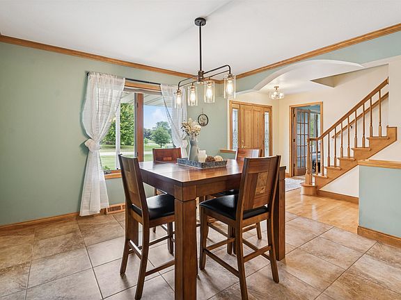 Move-in Ready Home situated on 1.02+/- Acres! This charming home welcomes you with a beautiful wraparound porch. Step inside to a spacious foyer that leads into the heart of the home. The kitchen features a granite counter tops with a center island, SS appliance package, adjacent breakfast area with patio doors opening to your concrete patio & private backyard. Cozy living rm offers a wood-burning fireplace, while a formal dining rm and office/family rm provide versatile living spaces. Convenient ½ bath completes the main flr. Upstairs the primary suite boasts a walk-in closet, private bath w/dual sinks and a tile walk- in shower. 3 additional generously sized bedrms, laundry rm & main bath completes the upper level. LL is ready for your finishing touches for a rec rm & exercise rm.