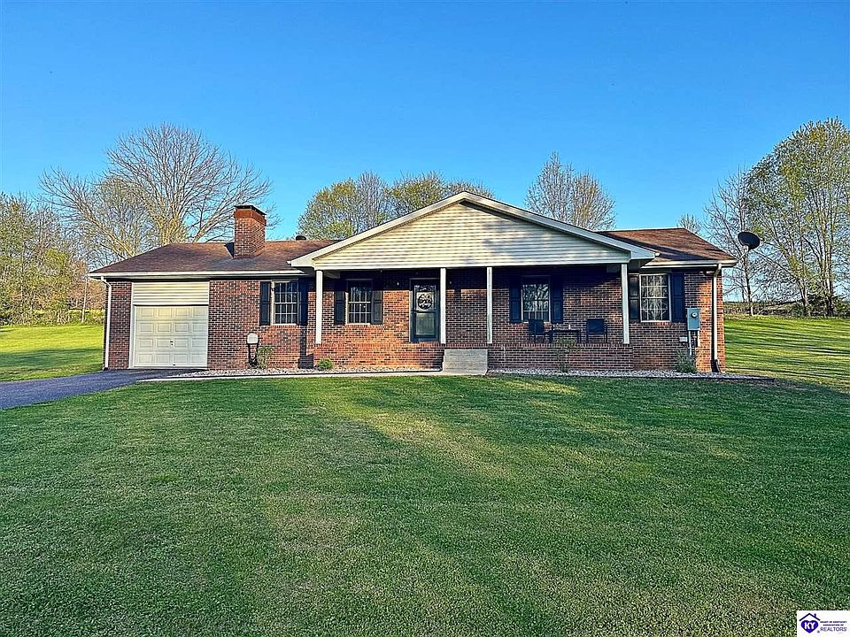 Welcome Home to your private Oasis featuring a serene creek, a Brick Ranch with 3 (could be 5) Bedrooms, 3 Baths, a Brick Wood Burning Fireplace in the Living Room, Kitchen/Dining combo with Bar, Stainless Steel Appliances, Granite Countertiops, a great size Laundry with Washer & Dryer included, a Pantry, a Finished Walk-Up Basement that hosts 2 possible bedrooms or could be used as office space or a gameroom (endless possibilities), a cozy Den with Electric Fireplace, a Kitchenette offering a sink and a Refrigerator, 1 of the 3 Baths, a Safe Room/Storm Shelter and a 1 Car Attached Garage. There are two options for heat (one being a wood burning stove that is tied into the ductwrok or you can use electric). As you pull up to the property you will notice a long blacktop driveway aligned with trees running beside the creek, a 2 Car Detached Garage w/ electric measuring 24 x 24, a Pole Barn with Loft measuring 24 x 34 also with electric and did I mention 3 +/- acres with wildlife galore? The layout of the land could easily be shared if anyone wanted to build another home. One of a kind property waiting on the next owner to call it HOME..Data believed correct; however, not guaranteed. Buyer to verify data prior to offer.