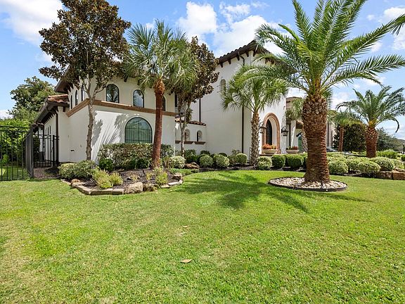 This GORGEOUS estate in an exclusive gated enclave with 24/7 security blends timeless architecture with resort-style sophistication. Beyond wrought iron doors, a private courtyard with fountain and casita sets the tone for elegance. A dramatic foyer with 24-ft ceilings and sweeping staircase makes an unforgettable impression. The first-floor primary suite offers a fireplace, spa bath with dual vanities, and a walk-through shower with his-and-hers shower heads and private entries. Its boutique-style two-story custom closet, designed like a luxury showroom, is a rare masterpiece. A theatre, gym, & game room complete the main level, plus 3 bedrooms upstairs & the casita, for 5 total. French doors open to a paradise with lagoon pool framed by Medjool palms, private hot tub, fire pits, summer kitchen, and a custom removable clear dance floor spanning the pool. Added luxuries include cooling mist over the grill area and covered patio, full-yard mosquito mist, and lanai with fireplace.