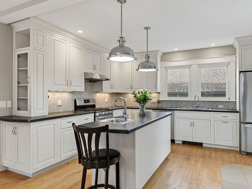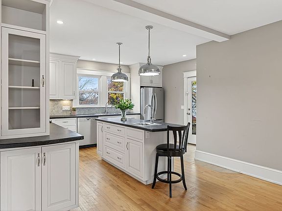 Nestled on a quiet dead-end street just steps from Willard Square and Willard Beach, this beautifully updated bungalow offers the perfect blend of comfort and convenience. The first floor features a recently renovated kitchen with a spacious island, an eat-in dining area, and an electric fireplace that adds a cozy touch. The open-concept layout flows seamlessly into the living room, creating an inviting space for gathering and entertaining.