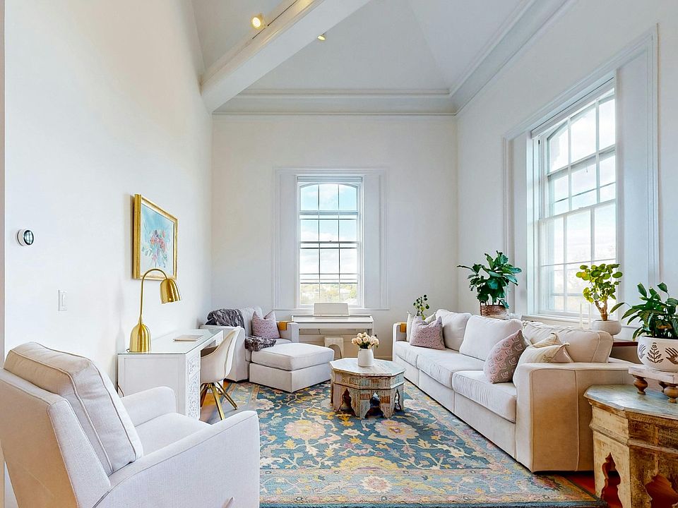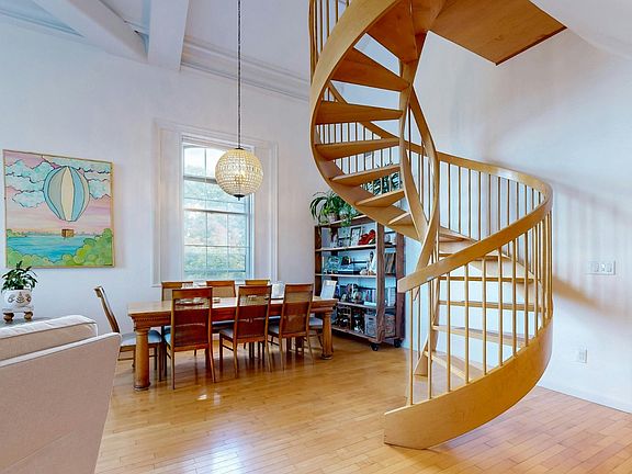 Welcome to Bowditch Place Condominiums in Salem’s beloved McIntire Historic District close to downtown! This stunningly renovated 2+ bed, 2-bath penthouse spans two floors with over 1,800 sq. ft. of light-filled space, soaring ceilings & oversized 8ft tall windows. The chef’s kitchen showcases stainless steel appliances, rich maple cabinetry, & granite countertops. En-suite primary with abundant closet space & a luxurious spa-like shower. Ascend the beautifully crafted wooden spiral staircase to a spacious loft, ideal for work/leisure. Additional highlights include a skylit second bedroom, central a/c, recessed lighting, hardwood floors, full-sized laundry, & smart home capabilities (thermal shades, living room lights, & nest thermostats). Enjoy a large outdoor common area, two off-street parking spaces, bike storage, professional management, & pet-friendly living. Close to the commuter rail, great local eateries, museums, & Salem’s vibrant charm as well as major highways and beaches.