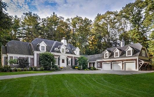 This custom-designed shingle-style home has it all. With white ash floors throughout the home and custom features around every corner, this home is not to be missed. The gracious foyer has barreled ceiling and leads step-down into the great room. Expansive bluestone fireplace with custom cypress mantel and paneling is a feature of this gorgeous room that was designed by William Lawrence Bottomley. Radiant heated floors & wet bar add to this fantastic entertaining space. Solid cherry custom built-ins with bluestone fireplace in library add to the unique sophistication of this home. Chef's kitchen with large Viking range, Sub-Zero refrigerator, farmhouse apron sink, honed granite counters, enormous island and large eat-in area provide the blueprint for family dinners and warm gatherings. First floor master suite has cathedral ceilings, custom built in office nook, marble bath, and attached laundry.Second floor main level has two beautifully designed en suite bed rooms. Side entry has wide hall/mudroom with wrapping room. Additional guest quarters over three-car (new mahogany door) garage includes two bedrooms, full marble bath & large office (could be used as bonus, art or game room). Media room in basement has custom tobacco wood bar, wine room and rustic decor. Gym is well positioned for great workouts with space for a variety of large equipment pieces. Backyard features grass tennis court and/or baseball infield and curated gardens with expansive bluestone fire pit patio. Deck with hot tub overlooks natural woodlands. Enjoy all that Medfield has to offer from its top school system, charming town center, community activities an small town feel.