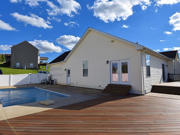 Ranch Home with Scenic Views, Pool & Full Finished Lower Level. This charming ranch offers an inviting open floor plan with updated LVP flooring and an updated kitchen featuring a sizable pantry. A convenient main-level laundry room adds to the comfort of single-level living. Take in the beautiful West Virginia landscape from the oversized composite, maintenance-free rear deck, or enjoy your own private oasis with an in-ground pool and privacy fence—perfect for relaxing or entertaining. The full finished lower level provides excellent flexibility with a second kitchen, 4th bedroom, 3rd full bath, ample storage space, and patio doors to the rear lot making it ideal for guests, or multi-generational living. A well-designed home offering comfort, versatility, and outstanding outdoor amenities.