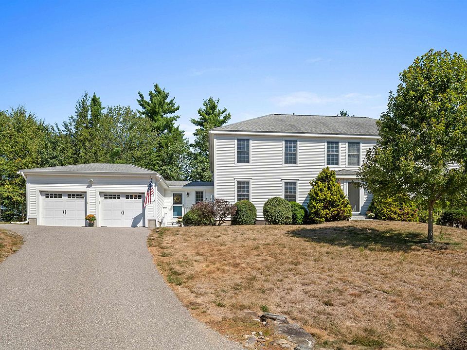 Situated on a cul-de-sac location this spacious three bedroom move in ready colonial style Epping condex offers the feel of a single family home yet benefits of condo living! Enter through the 12 x 11 mudroom/sunroom with direct access to the 2 car garage. The bright and airy living room and dining room offers lovely hardwood flooring, gas fireplace, 9 foot ceilings, crown moulding and rear yard views. The well laid out kitchen provides a butcher block center island, plenty of cherry cabinetry, stainless steel appliances, stone backsplash and access to private rear deck. First floor laundry and half bath. Second floor provides 3 bedrooms including private primary suite with lots of closet space including a walk in closet and 3/4 bath. Two additional bedrooms and full bath. Lower level with daylight walk out to rear yard is unfinished but could be a great rec room, workshop or work out area. Additional features include: vinyl siding, shed, central a/c, gas heat and generator hook up. Enjoy an outdoor space to include 2 private decks and patio and peak a boo views of the Lamprey river Pet friendly, centrally located in Epping and only a 5 minute drive to shopping, highways and restaurants. Just a short drive to downtown Portsmouth, local beaches and Manchester airport! Come see what Seacoast easy condo living is all about!