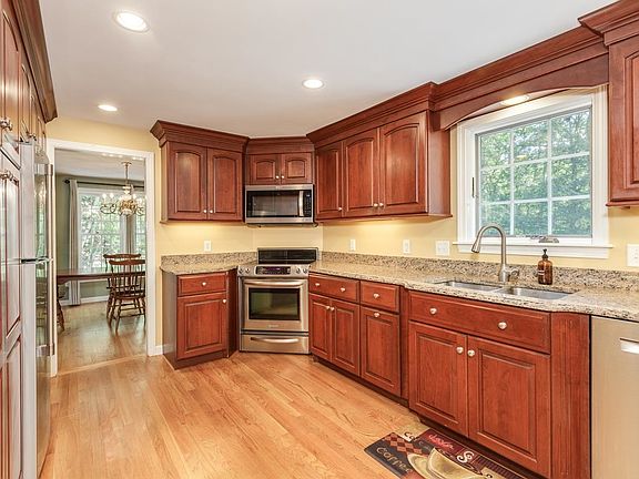 This quintessential neighborhood is ready for the next owner to call it home. Enjoy the quiet country setting while being close to all services. The neighborhood beckons you to take leisurely strolls or for those more adventurous, explore the miles Rockingham Rail Trail nearby. The well-maintained home features a fully updated kitchen, that is spacious and inviting, with a built-in banquette and work station. The primary bedroom has a full ensuite bathroom. Three additional bedrooms allow for a home office, craft space, playroom or home gym. Enjoy the warmth of the gas fireplace in colder months. Fabulous 3 season porch, overlooking the sunny back yard, beckons you to sit and enjoy. The backyard is a sanctuary of its own, with a spacious deck that is tailor-made for outdoor gatherings and alfresco dining. Basement adds additional space. This adorable property is deceptively large and available for a quick close. Welcome Home! Showings begin at Open House Fri August 11th 4:30-6:30, Sat 10-12, Sun 12-2