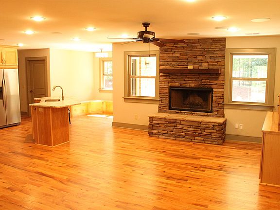 Welcome to the great outdoors! A woodsy paradise awaits your arrival. Custom all brick 3 bed 2 bath 1,681 heated square foot home with 865 sqft oversized heated garage on 5 breath taking acres with deeded/shared pond and creek. This fantastically build home features 3" Cabin Grade Hardwoods throughout, Slate Stone wood burning fireplace, Gourmet kitchen with stainless appliances, leathered granite island, repurposed heart pine mantle piece, hickory cabinetry all with soft close doors and drawers, stylish hardware and molding, whole house wired with surround sound and Bluetooth capability, tankless water heater and propane fed gas range, I-joist silent floor, oversized glass shower with multiple shower heads, a view of the pond from the swing on the front porch and from the home office, a back porch with room for a hot tub or Jacuzzi, Thermador BBQ Grill vent hood, fenced and mature landscaped yard, Barn style Graceland storage shop, chicken coop, enclosed hunting cabin/stand overlooking the creek and food plot with ample wildlife. 10 year crawl space warranty. The attention to detail is all here!