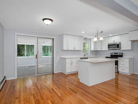 Beautifully renovated expanded 4 bedroom raised ranch on the Westford/Groton line! This property offers new siding, windows, new septic just installed, complete new heating system with tankless hot water, renovated kitchen with upgraded cabinets, quartz countertops and new stainless appliances, Master bedroom with recessed lighting, 3 closets, and master bath with double sink and tiled shower, renovated main bath, refinished hardwood flooring throughout, sunroom off the dining area and lets not forget the family room/playroom in the basement with easy to use no maintenance electric fireplace! Also 2 car garage under with newly paved driveway! Must see!