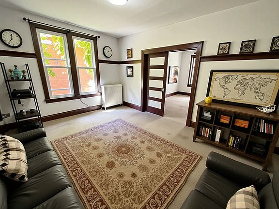 This unit is a hidden gem with tons of character, high ceilings, cherry rail, and extra wide baseboards.