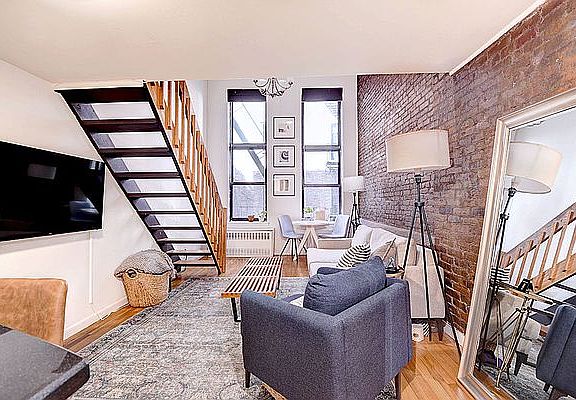 To view an interactive 3D virtual tour click the link below the image section or visit our site at urbanebrokerage . com . This unit will only be shown during the posted open house days and hours. 35 Grove is located in the historic Bleecker Street corridor. The block is famous for many reasons including the TV show Friends. The neighborhood is filled with restaurants like Buvette (which is across the street), music venues, easy transportation, boutique retail, cafes, bars and nightlife. The building is elevator/laundry with a live in super and is professionally managed. The unit is a duplex 1 bedroom modern renovated loft. It features a stainless steel modern open concept kitchen, soaring high ceilings, natural light, king sized lofted bedroom, 1.5 bathrooms, exposed brick and hardwood floors.