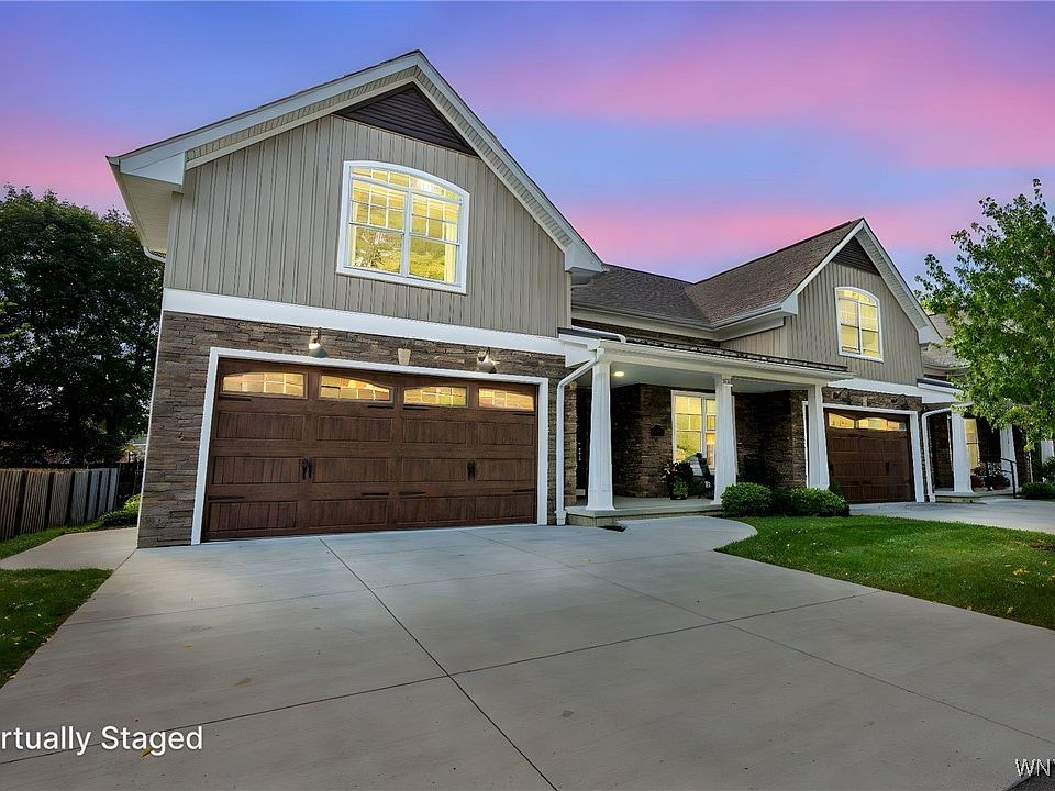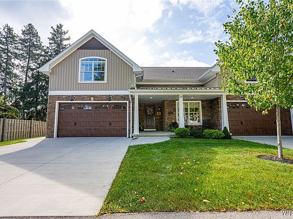 An exquisite opportunity awaits in this distinguished 3-bedroom, 3-bath end-unit condo townhouse, offering refined luxury in the heart of the highly sought-after Village of East Aurora. Surrounded by a walkable, historic, storybook setting, this nearly new residence showcases impeccable modern finishes and a seamless open-concept layout designed for both everyday living and sophisticated entertaining. The first-floor primary suite provides convenience and elegance with an attached laundry, while a versatile office or additional bedroom overlooks the charming front porch. Upstairs, a generously sized second bedroom with a full bath and loft-like appeal offers privacy and comfort. Experience the warmth of a double-sided fireplace indoors or extend your living space outdoors to the private patio. Blending elegance, comfort, and an unmatched location, this rare offering embodies the very best of village living.