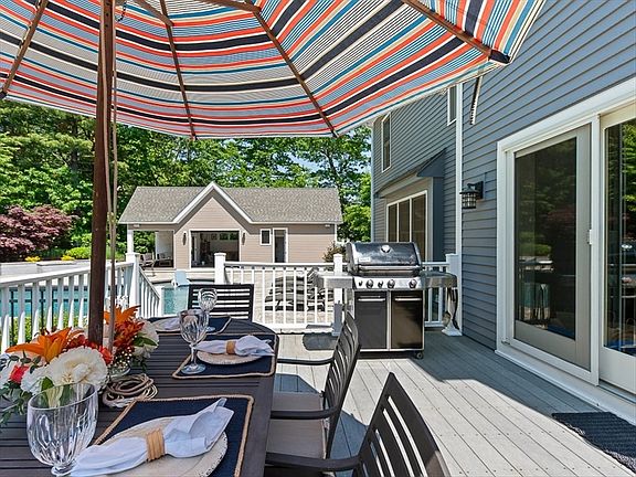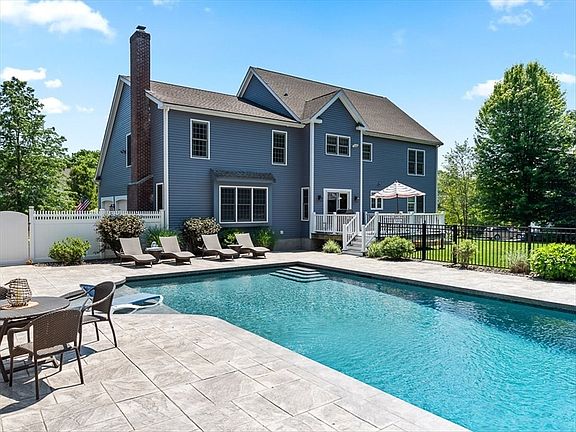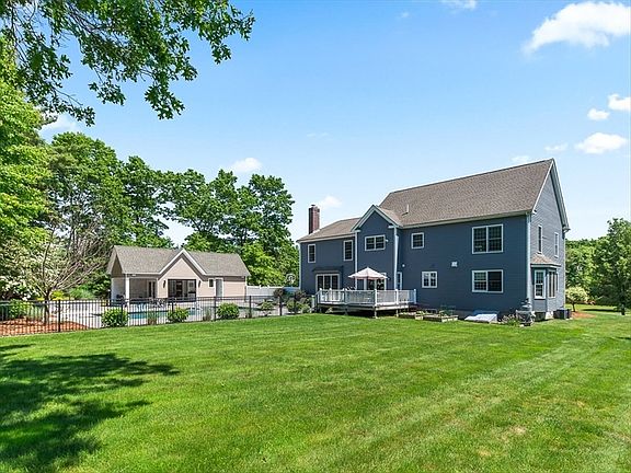 **Offers Due Monday at 2pm This fantastic 4-5 bedroom, 3½ bath home in Cooks Farm, abutting conservation land, offers luxury and privacy. A chef’s dream kitchen, renovated in 2023, boasts honed granite countertops, custom cabinetry, stainless steel appliances, and a WOLF 6-burner stove. The spacious first floor includes a dining room, living room, family room, and private office. The master suite is a retreat with double walk-in closets, a seating area, an en suite with double vanities, a jacuzzi tub, and a full tiled shower. The guest bath was renovated in 2022 with granite countertops. Custom closets and window treatments throughout enhance both storage and style. The finished basement includes a 5th bedroom, full bath, TV room, weight room, workshop, and utility room. The backyard oasis features a 20x40 gunite salt pool, a 736 sq. ft. custom pool house with kitchenette, Sonos sound system, reclaimed wood sling door, bath, veranda, and granite firepit—perfect for entertaining!