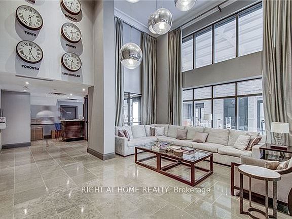 Bloor Street Neighborhood - Prime Downtown Living Located in the heart of the city with a perfect walk score of 100, this east-facing suite offers abundant natural light and a functional open-concept layout. Featuring two bedrooms plus a den with 10' ceilings, the home combines style and practicality. *Hardwood floors and custom crown molding throughout living/dining/kitchen areas *Modern kitchen with stainless steel appliances, marble counters, and walk-out to balcony *Primary suite with 4-piece ensuite, walk-in closet, and balcony access *Den has been set up as a home office.