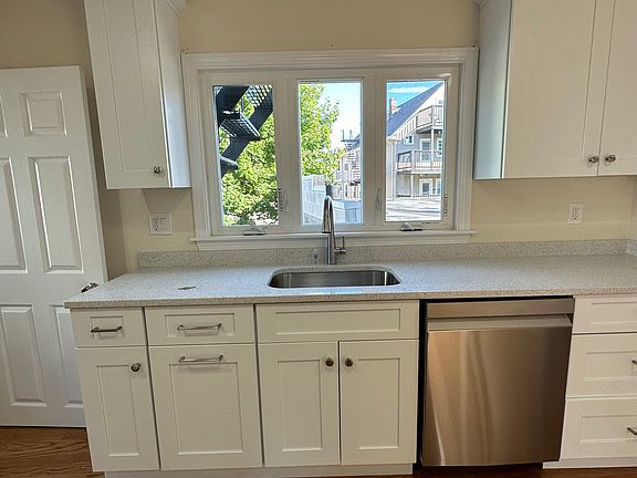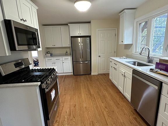 Recently renovated 2 bed 1 bathroom apartment with in-unit washer and dryer! This first floor apartment features new hardwood flooring, spacious bedrooms + closets, brand new appliances, bathroom, and exclusive access to the basement that features your own brand new washer and dryer. Moreover, 1 garage parking space included with 1 additional tandem space on the newly paved driveway. Garage features automatic garage door opener. Building is professionally managed. Owner pays for water and sewer. Tenant is responsible for gas, electric, and internet. First month, last month, half security, 1 month broker fee due at lease signing.