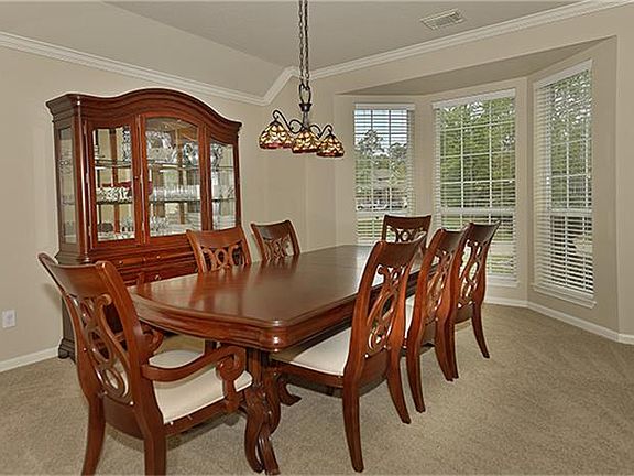 Amazing one story home in Sterling Ridge! Beautiful carpet & tile floors, neutral paint colors, graceful columns, crown moulding, art niches, soaring ceilings & curved archways. Kitchen w/Silestone counters, stainless steel appliances & breakfast bar opens to sunny breakfast nook; spacious den w/wood burning fireplace; both formals; 4 generous bedrooms; 2 full baths; fenced yard w/covered patio & stone walkway surrounded by pristine landscaping. Wow!