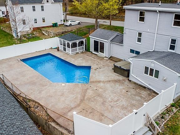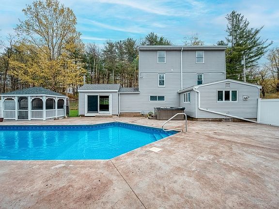 Relax in the resort like suburban getaway that features a heated salt water inground pool, gazebo, a fenced in area with turf for your pets and hot tub. The space-maximizing floor plan features a warm and welcoming interior and comes complete with generous living spaces. Living room has a gas fireplace making it feel cozy. Right down the street from biking trails and local shops. Keep your vehicles clean and dry with a spacious 3-car detached garage that features an electric car charging station and is set to have an additional electric charger added. Also has an RV hook up next to the garage. This unique home won't last long.