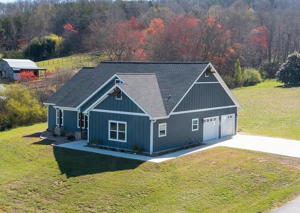 Newer mountain home in the desirable Warne Community. This 3/2 home was built in 2022, all composite exterior so you will have many years of low maintenance cost. It sets on a little over an acre and has very easy access, all roads are paved and basically flat to the house. Beautiful surroundings, pretty pasture views with the mountains in the distance. There is a small branch running along the East side of the lot. Yard has a gentle slope for easy mowing. The poured walkways around to both entrances are a nice touch as well permanent Christmas lights attached to soffits with different color variations you control. Interior has a modern feel with neutral colors, granite countertops, plenty of cabinet space, nice size bedrooms, large walk-in closet for the master with barn door.  Location is great, just a short drive to Hayesville and 25 minutes or less of Murphy, Hiawassee, Young Harris, or Blairsville.  This is truly a beautiful home and will not disappoint.