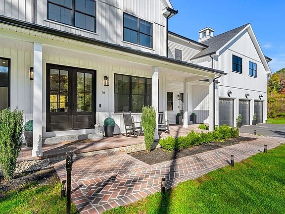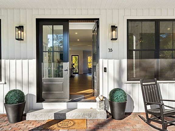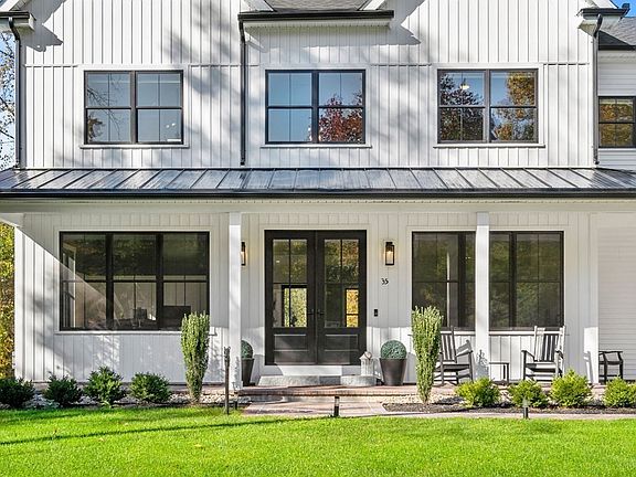 Unique modern farmhouse sited on private 1.1 acre lot in a distinguished North Andover neighborhood. Located down the street from Smolak farm; 35 Hitching Post feels magazine worthy. Sleek first floor offers a stunning layout w/ dramatic 10ft ceilings, oversized black windows and sight lines from front to back. Beautiful board and batten wainscot walls create wow factor in the foyer. Boss home office with pocket french doors & a dedicated formal dining room. Loaded gourmet kitchen w/ Wolfe 6 burner range, double oven, farmers sink, custom hood vent, oversized island, breakfast nook, fireplace & access to the back deck. Upstairs bedrooms include primary suite w/ tray ceilings, dual walk-in closets & a soaking bath with a serene view. Additional bedroom w/ en suite, second floor laundry & massive great room to hang out. Opportunity to finish expansive basement w/ walk out to the yard & 9 ft ceilings. 3 car garage, modern landscaping, charming front porch. 2021 build & move in ready.