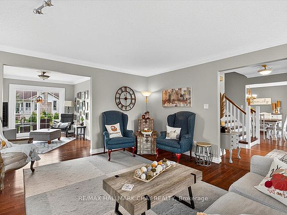 Welcome to Harbourwood in Oro-Station! This beautifully renovated 2-storey offers over 3,000 sq. ft. of living space and a sought-after lake lifestyle. Fully updated in 2018, it features hardwood floors, a chefs kitchen with granite counters, island seating, and custom cabinetry. Bright garden doors lead to a spacious deck with a hot tub. The home includes 4 bedrooms, 3 bathrooms, and a finished basement with a cozy gas fireplace and a large rec room. Oversized double garage with inside entry, backyard access, and plenty of storage for vehicles, boats, and outdoor gear. Enjoy perennial landscaping with a private retreat corner. Steps to trails, Memorial Beach, and lake access, with commuter routes close by. Located in the Guthrie PS and Eastview SS catchments, both highly regarded.