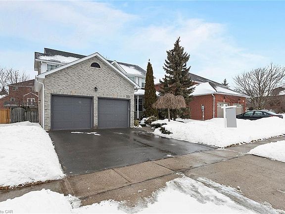 Welcome to 35 Hume Drive! This is the home you have been waiting for! This home is located in a prime location in Cambridge on a quiet street. It is minutes to the 401, Shade's Mill Conservation Area and in walking distance to St. Margaret's Catholic School and to Clemens Mill Public School. This fully brick, 2-storey home is loaded with upgrades. It is meticulously maintained and in superb condition. The brand new matte black front door (installed in Feb. 2021) welcomes you to a large entry way with the original wood banister recently painted, newer flooring and fresh paint throughout. The main floor is also home to a laundry room/mud room off of the garage, a powder room, a living room, a family room with a gas fireplace, a formal dining room and a large modern eat-in kitchen that was completed in 2017. The renovated Kitchen is very fresh and bright and has new white cabinets, quartz countertops, subway tile backsplash and new stainless steel appliances with a new glass sliding back door (Feb. 2021) that welcomes you to a large backyard. The backyard is in great condition with a good size deck perfect for entertaining, a patio on the lower level, mature maple and cedar trees for privacy and is fully fenced in for children and pets to play in. Upstairs you will find a large master bedroom with Jack and Jill closets, a newly updated en-suite with an a tiled stand up shower (Jan. 2021) and seperate bathtub. There are 3 other good size bedrooms upstairs and another 4 piece bathroom. Don't forget about the fully finished basement with another gas fireplace perfect for movie nights with the family that also has a finished 2 piece bathroom, cold storage room and bonus side room that is perfect for storage! This home has pride and ownership shining through from top to bottom and is completely move in ready! Do not wait to book a showing!