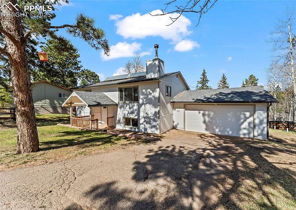 Fresh, bright, and newly remodeled in Woodland Park. Set among mature pines on a gently sloping, usable lot, this 3-bed, 2-bath split-level blends mountain living with modern, low-maintenance finishes. Inside, brand-new LVP flooring flows throughout and new interior paint keeps everything light and airy. The all-new kitchen shines with white shaker cabinets, quartz countertops, and stainless steel appliances—an inviting hub for meals and gatherings. Both bathrooms are fully updated with dual vanities and sleek tile showers for everyday ease. Two generous living areas offer flexible space for relaxing, entertaining, or working from home. The large laundry/utility room (with sink) keeps gear and projects organized, and the attached garage adds everyday convenience. On the roof, active solar thermal panels serve the water heater with electric backup—designed for comfort and efficiency. Outside, enjoy a spacious yard under towering pines plus a deck for grilling and stargazing. Westwood Lakes Community residents enjoy access to a private lake. Walk to the college, and reach local shops, dining, and healthcare—including the hospital—within a short drive. Trails, lakes, and endless Pike Peak–area recreation are close at hand. Schedule your showing today!