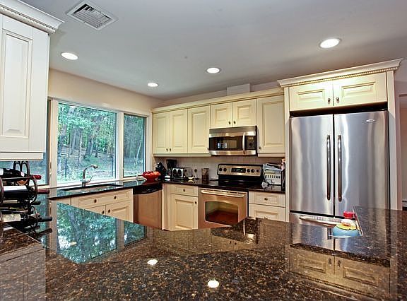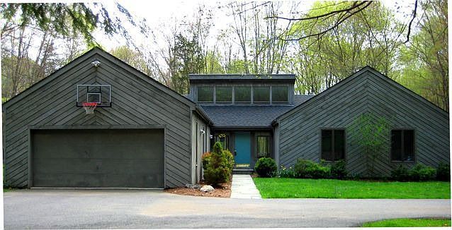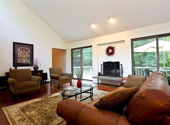 The perfect, peaceful setting! Pristine and immaculate woodland Contemporary. Clean lines and bright spaces, include gleaming hardwood floors, two fireplaces and recessed lighting. Stunning Living Room with vaulted ceiling, clerestory and fireplace. Formal Dining Room. Country Kitchen with Breakfast Area. Family Room with Fireplace. First Floor Master Suite. Three additional Bedrooms. Recreation Room and Gym. Over two sleepy acres abutting the protected lands of the 38 acre Halle Ravine Preserve