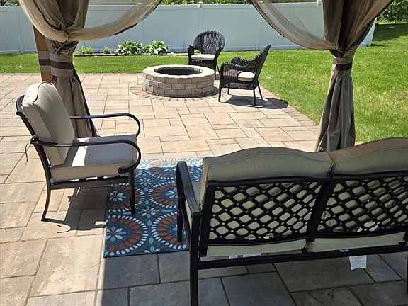 Beautiful split entry home. As you enter you are greeted with vaulted ceilings and light galore. An open layout connects the living area and dining area. The kitchen showcases upgraded GE Cafe appliances, quartz countertops, a tile backsplash & breakfast bar. The primary suite provides privacy, a spacious walk-in closet and full en-suite bath. The other two bedrooms with a full bath can be found on the opposite side of the main living level. The lower level is fully finished an ideal space for a media/game room. The lower level is completed by a 1/2 bath and laundry room. Step out into your fully fenced backyard oasis complete with patio and built-in fire pit - a great place for your summer entertaining.