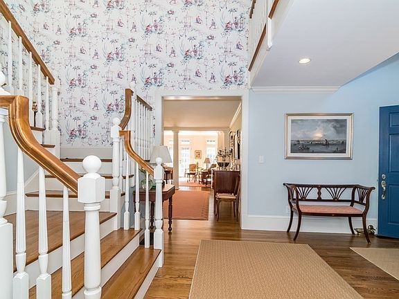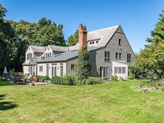 Elegance meets sophistication with this stunning 4,214± SF Contemporary-Colonial located at Jackson Pond adjacent to the Dedham Country & Polo Club in much sought after Precinct 1. The welcoming two-story foyer leads to a cozy den with built-in bookshelves, sunny office & first floor bedroom with en-suite bathroom. A banquet size formal dining room with architectural columns flows seamlessly into a vaulted ceiling living room with fireplace & French door leading to the rear terrace. At the heart of this home is a sunny, open kitchen with center island, spacious breakfast room, mudroom & adjacent family room with fireplace. The second floor boasts a luxurious primary bedroom suite with dressing room, sitting room & private deck. Two additional bedrooms, a full bath, laundry room & library bookshelves complete the spacious second floor. Finished walk-out lower level recreation room with full bathroom. The expansive, private grounds include a large stone terrace & exquisite gardens.