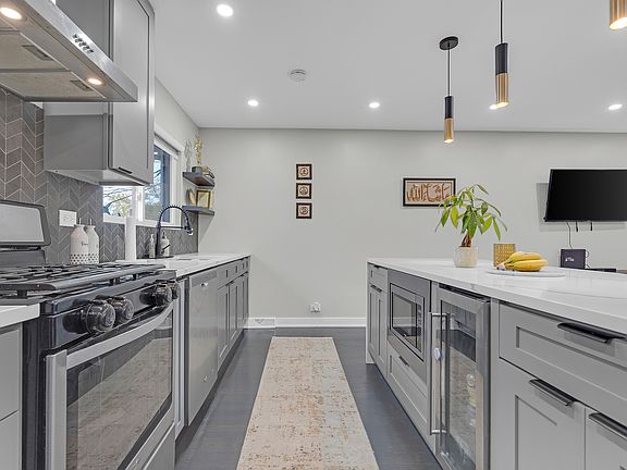 Welcome home to modern living at its finest! This beautifully updated residence offers a seamless blend of style and comfort, featuring a stunning new kitchen with a waterfall island, wine fridge, and stainless steel appliances. Enjoy an open, flowing layout with refinished hardwood floors and abundant natural light. The designer-tiled bathrooms, updated lighting, and finished lower level with a decorative fireplace add warmth and sophistication. Step outside to a large, private fenced yard with a new patio-perfect for entertaining. Recently painted inside and out, with manicured landscaping and an attached 2.5-car garage with built-in storage. Nestled in a beautiful Glenview neighborhood known for its tree-lined streets, parks, and convenient access to shops and restaurants-just move in and make it home!