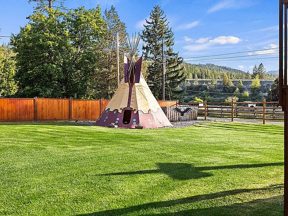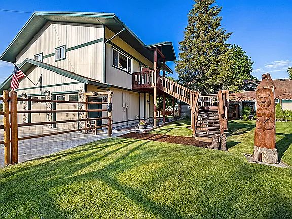 Western lodge type decorStylish finishesGorgeous flathead lake viewsPlentiful windowsDumb waiterEntertainment deckEnormous completely fenced yard