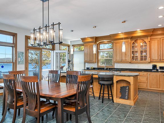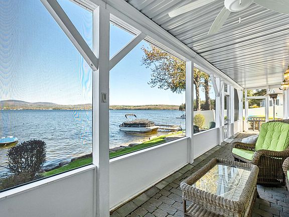 This pristine, 4 bedroom, 4 bath Winnisquam waterfront home is a stunner, with long views, sandy bottom frontage and an impeccably cared for home with many improvements. Enjoy unobstructed views from nearly every area of this exceptional property including the house, deck, lower-level screened porch, lakeside patio and the dock. 50', seasonal dock offers plenty of parking for watercraft and toys and is generally protected from winds and weather. The exterior is beautifully landscaped and has a 4-zone irrigation system. The home offers 3 levels of living space to spread out, including an open concept main living area and lower-level family room for gathering. The main floor features an updated kitchen with huge center island, Wolfe appliances and stunning granite, that opens directly to the dining area and a spacious fireplaced living room. The 2nd floor offers 3 bedrooms, one of which is a sanctuary-like suite, a sauna room and shared full bath. Walkout lower level has a kitchenette, family room, ¾ bath, bedroom, storage room and screened in porch with hot tub overlooking the lake. All 3 levels have in-floor radiant heat and A/C. Recent improvements: Viessman boiler, updated kitchen and baths, whole house generator, interior paint, hot tub, sauna, dock, washer/dryer. Finished 2 car garage attached plus a 1 car detached with storage underneath. Private road is town maintained. Public sewer, private drilled well.