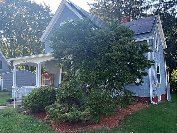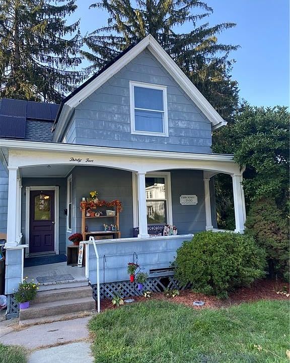 Here is your opportunity to own a beautiful piece of history! This charming Victorian home sits near the Rockville/Ellington line and is close to too many amenities to list. Do you love porches? Enjoy the open front porch, the three season back porch off the kitchen and a second floor bedroom has a full door to the roof with the potential for a second story porch facing the large private back yard. The first floor boasts high ceilings, crown moldings, original hardwood floors and new thermopane windows. Solar panels provide energy efficiency with reported annual electricity cost on average of $420 per year for a family of five. The den on the first floor has endless options and has an entry door from the kitchen and the living room. The second floor has three bedrooms plus a large dressing room when you enter the full bath. The full bath has beautiful vintage tile flooring and subway tiled walls. Two of the three bedrooms have the original hardwood floor exposed and the third bedroom has the original hardwood under wall to wall carpeting. There is a newer hot water heater, oil tank, upgraded electrical panel and brand new sump pump in the large basement that provides plenty of storage space. The furnace has been well maintained and serviced annually. The roof is five years young! This home is in need of some cosmetic TLC but it is a beauty and has endless potential! This home is being sold "AS IS".