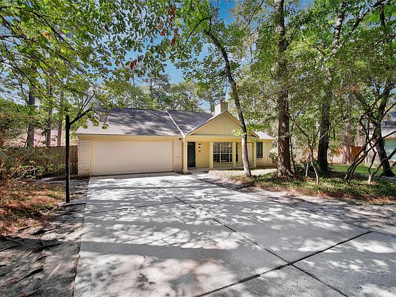 Cool off from the Texas heat with a pool in your own back yard. This adorable single story home is situated on an extra large homesite at the end of the cul-de-sac in this highly sought-after, central Woodlands neighborhood in Indian Springs. The focal point of the living room is the fireplace, perfect for chilly evenings. There's a large room addition at the back of the home which can be used as a bedroom, and it would also function very well as a game room or second living area. This backyard has a sparkling pool, lots of decking, and plenty of room to run and play. Fantastic location in central Woodlands with exemplary schools and access to all of The Woodlands amenities. Recent updates include carpet, LVP flooring in living areas & hallway, fresh painting in todays popular color pallet, quartz counter top in the secondary bathroom, gas range and microwave. Seller has invested a lot to freshen up this home, and buyers can now add their personal stamp to the rest. Lots of potential!