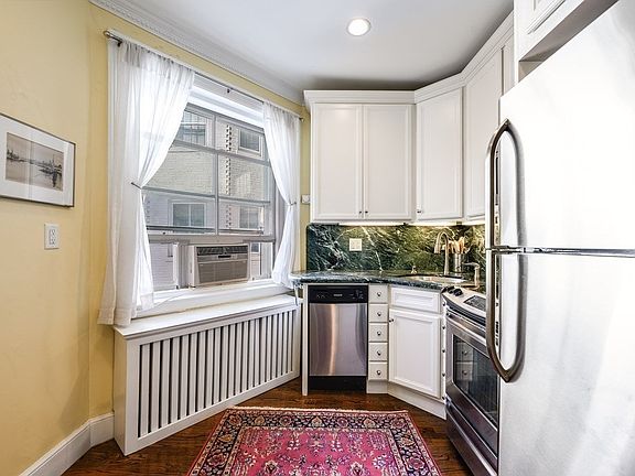 Charming Mid-Cambridge studio blocks away from everything. This third floor unit features an elegant hallway with custom built-in bookcases and cabinetry leading into the kitchen. The well-equipped kitchen has a full fridge, marble countertop & backsplash, a surplus of cabinets and a dishwasher. The living room has a large bay window providing plenty of natural light which overlooks the building’s enclosed patio. Separate sleeping area divided by a large bookcase. Enjoy a morning coffee on the private deck. High end finishes can be found throughout the well cared for home. The building is conveniently located 1/2 a mile from Central Sq, Inman Sq, and the Charles River. Only 3/4 of a mile from Harvard Sq. Common laundry and bike storage in the basement. This unit has everything you need. Condo is being offered furnished or unfurnished.